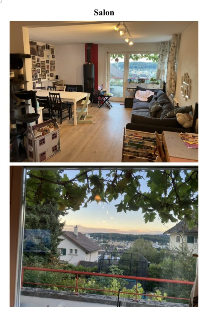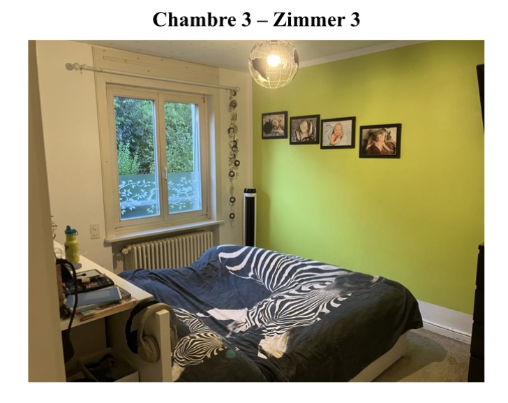 deux appartements. Au premier étage logent des étudiants. Le prix de location est de 1’800.- CHF par mois, prix qui comprend les charges telles qu’eau, chauffage et électricité, ainsi que la jouissance et l’entretien du jardin, de la place de jeux et des arbres fruitiers.
